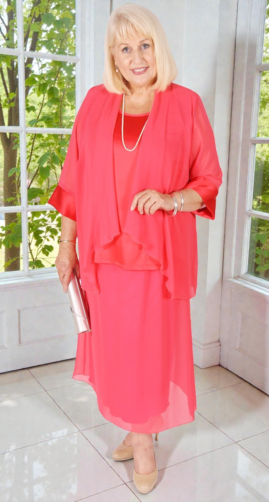 The Ava satin cami is designed to be worn with the matching Ava Chiffon Waterfall Jacket and Ava A-line Chiffon Skirt. The cami is made from a stretch polyester satin for comfort and bound at the neck and armholes with matching Georgette. The perfect combination for your next special occasion.