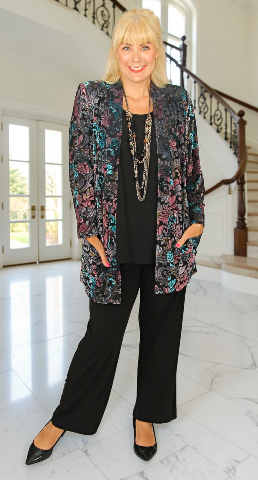 Feel confident and radiant in this sumptuous velvet jacket, expertly tailored for plus-size elegance. The gentle pastel tone and luxurious fabric create an understated yet striking presence, while the relaxed fit allows you to move with ease. This jacket is your go-to companion for weddings, celebrations, and special moments. Layer it over your favourite pieces and enjoy the sophisticated, polished appearance that makes you feel genuinely supported and beautiful.