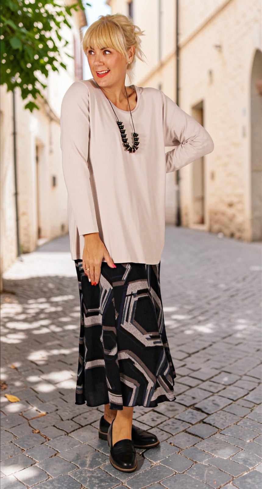 Stay warm and comfortable in this flattering eight gore skirt. Made from soft, fluffy knit fabric, it's designed to flatter your figure while keeping you cosy. At 85cm long, it's easy to care for and requires no ironing—perfect for everyday wear.