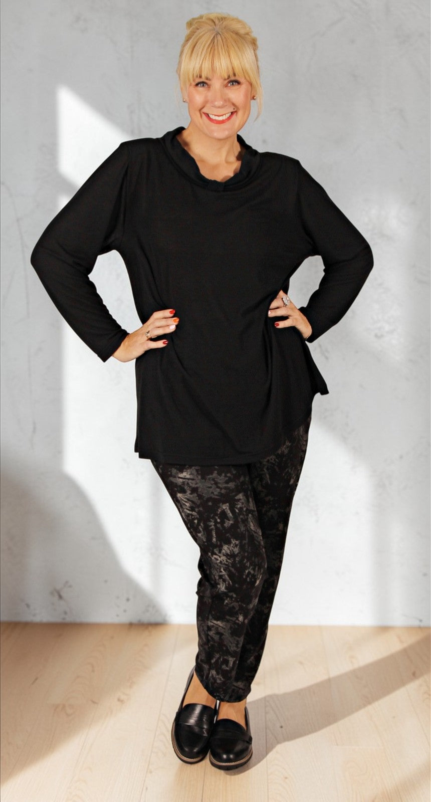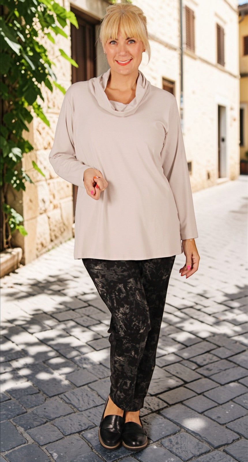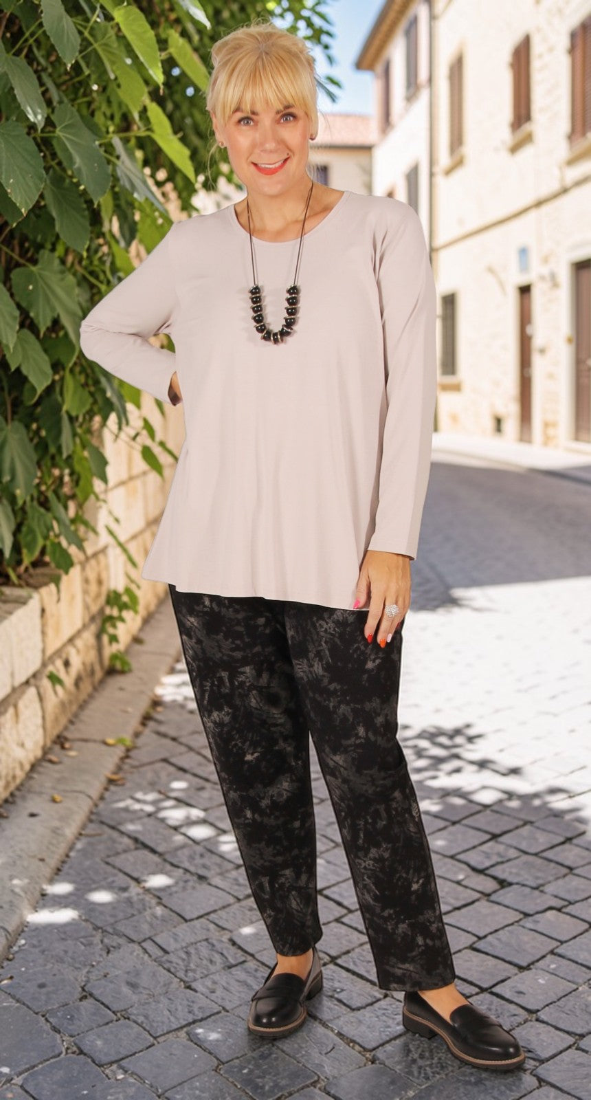 Elevate your winter wardrobe with this versatile ponti pant in stunning natural on black print. Crafted from a premium poly/viscose/spandex blend, the fabric offers warmth and durability while remaining easy to care for—simply wash and wear with no ironing needed. Layer it with your favourite winter tops and jackets for endless styling possibilities that work for every occasion.