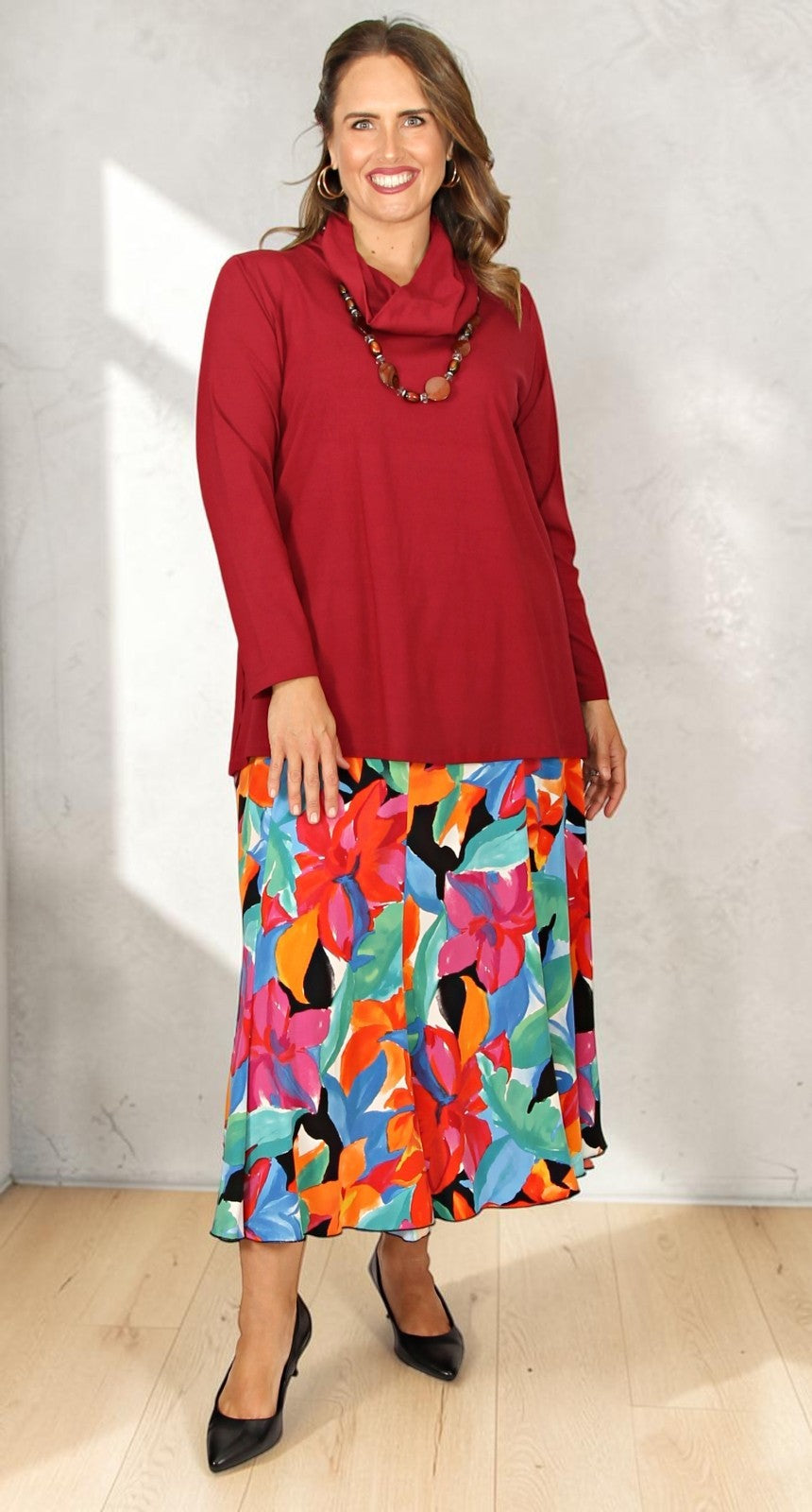 Cosy Cowl Neck Top Burgundy