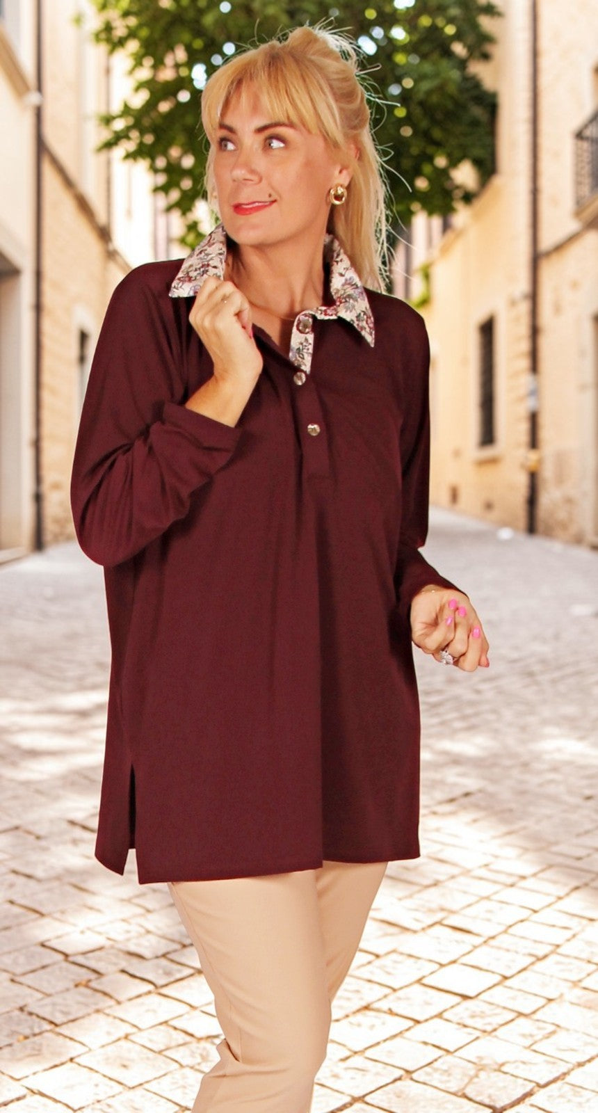 Unleash your sporty style with our Derby Polo, a classic design that combines brushed polyester spandex with a relaxed fit and an A-line cut for ultimate comfort and style. Available in a variety of colors, this must-have piece features a button placket, matching liberty print collar. With side splits to provide extra room at the hips. At 32 inches or 82cms in length, it's the perfect addition to any wardrobe.